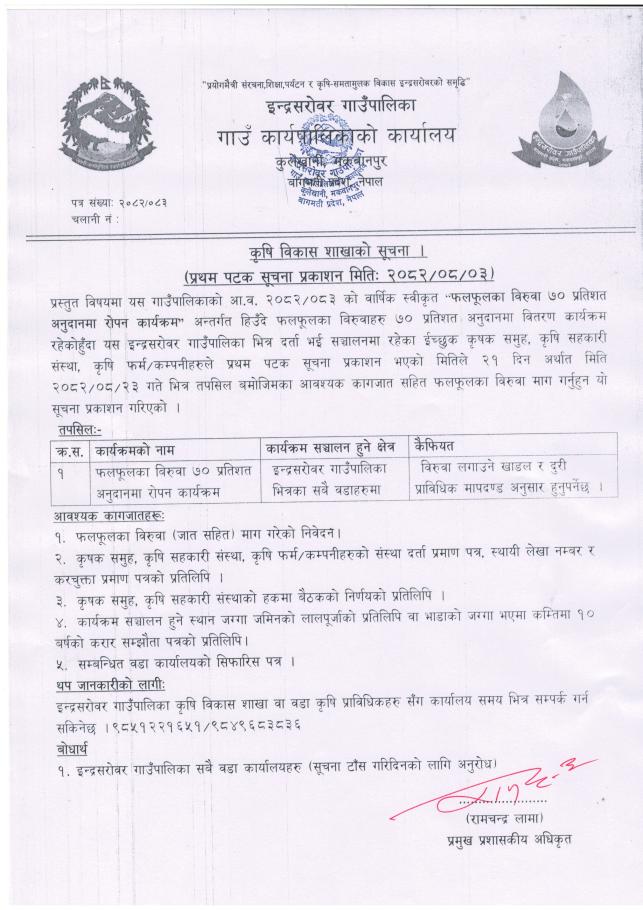 घाँसको बिउ वितरण सम्बन्धी सूचना |