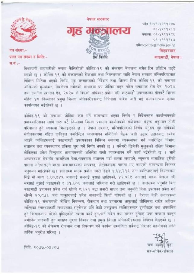 गृह मन्त्रालयद्वारा जारी प्रेस विज्ञप्ति ।