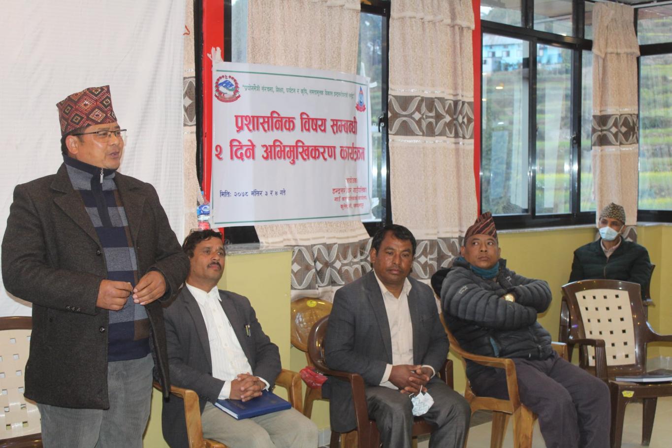 मिति २०७८-०८-०३ गते जिल्ला प्रशासन कार्यालय, मकवानपुरको आयोजनामा राष्ट्रिय परिचय पत्र प्रणालीको बारेमा यस इन्द्रसरोवर गाउँपालिकामा प्रमुख जिल्ला अधिकारी श्री भरत मणी पाण्डे ज्यूको अध्यक्षतामा १ दिने अभिमुखीकरण सम्पन्न भयो।