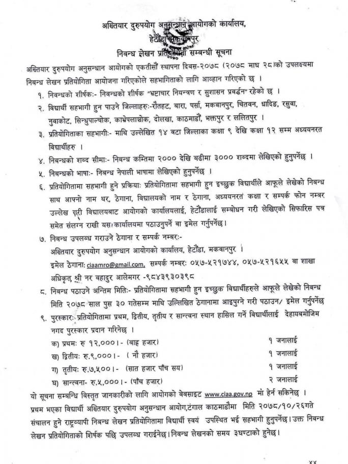 » निबन्ध लेखन प्रतियोगिता सम्बन्धी सूचना!