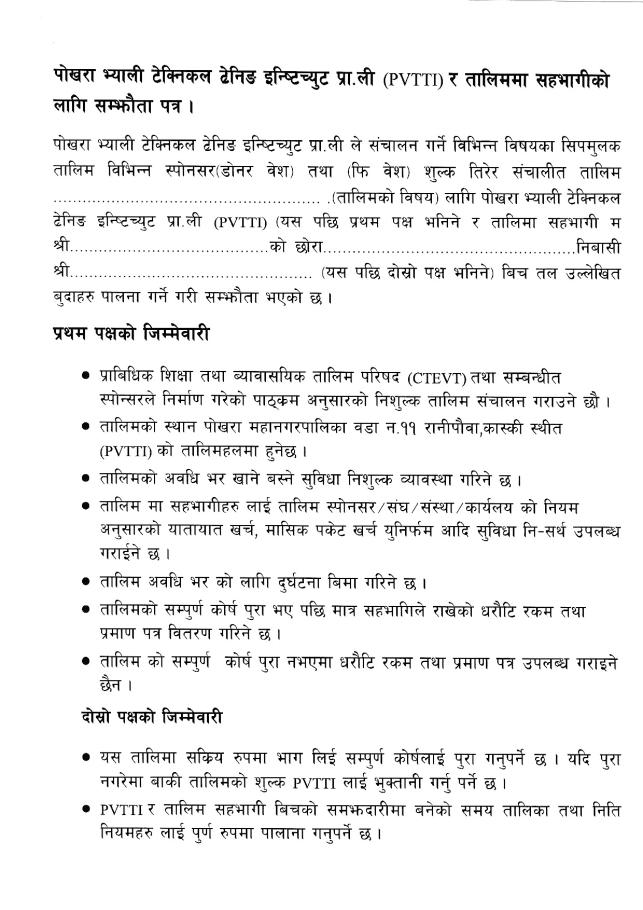 नि:शुल्क तालिम सम्बन्धी सूचना ।
