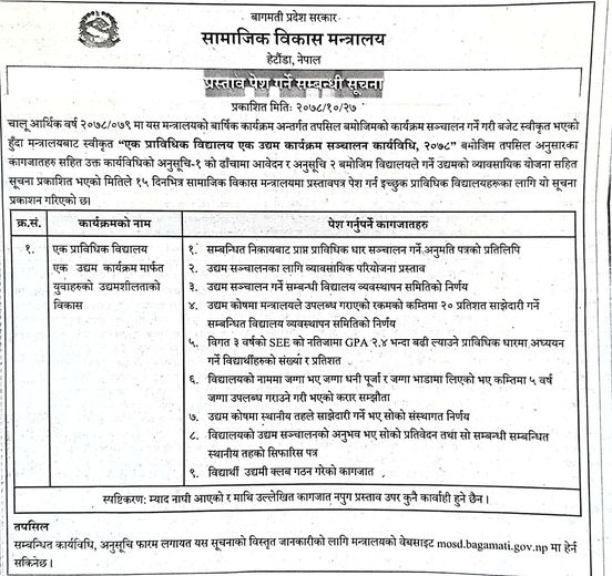 » प्रस्ताव पेश गर्ने सम्बन्धी सूचना !!