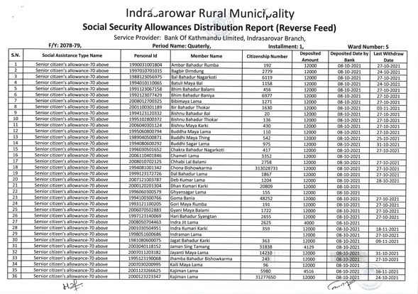 आ.व २०८१-०८२ को चौथो किस्ताको सामाजिक सुरक्षा भत्ता वडा नं. ५ बाट प्राप्त गरेका लाभग्राहीहरुको विवरण
