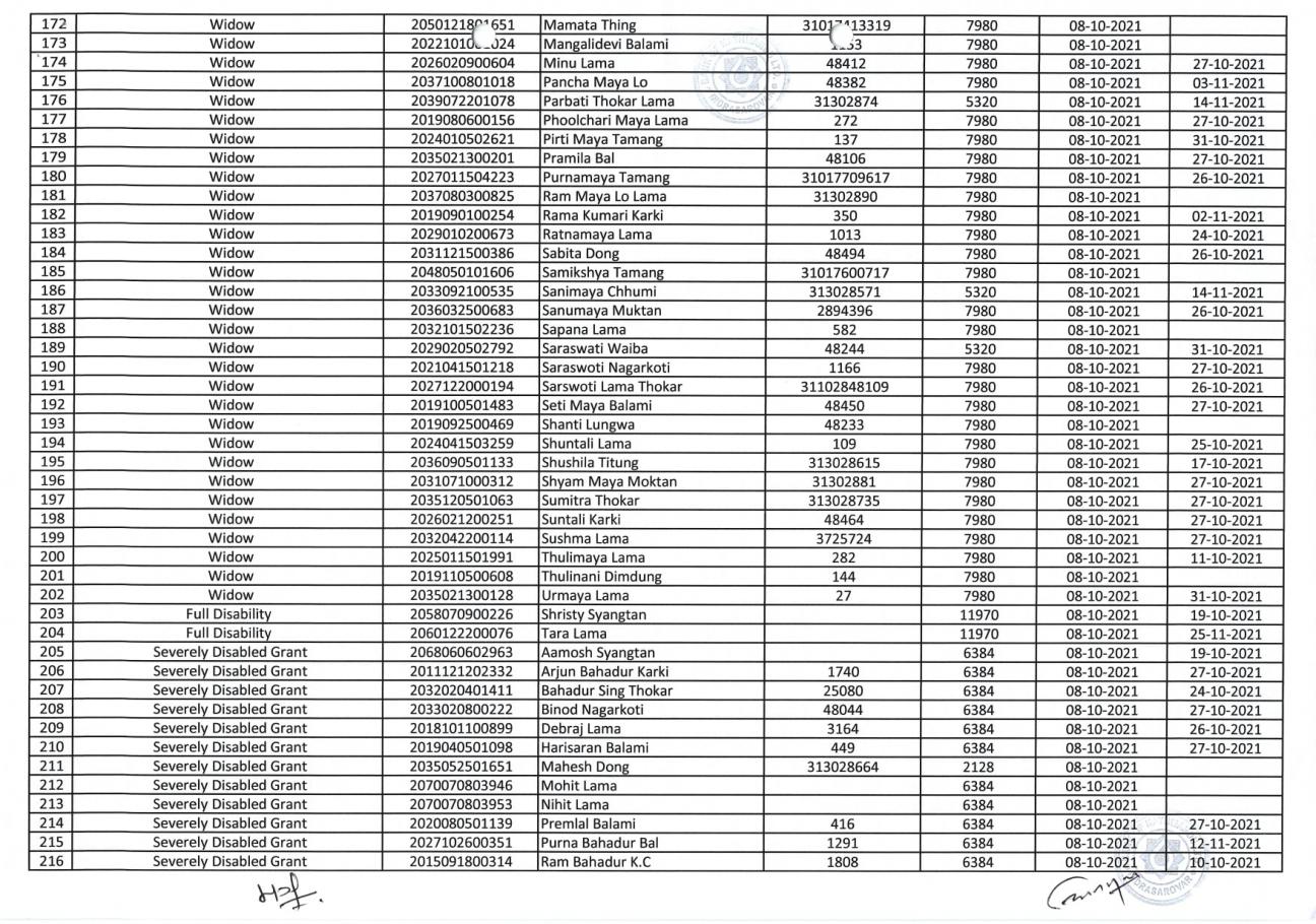 आ.व २०८१-०८२ को तेस्रो किस्ताको सामाजिक सुरक्षा भत्ता वडा नं. २ बाट प्राप्त गरेका लाभग्राहीहरुको विवरण