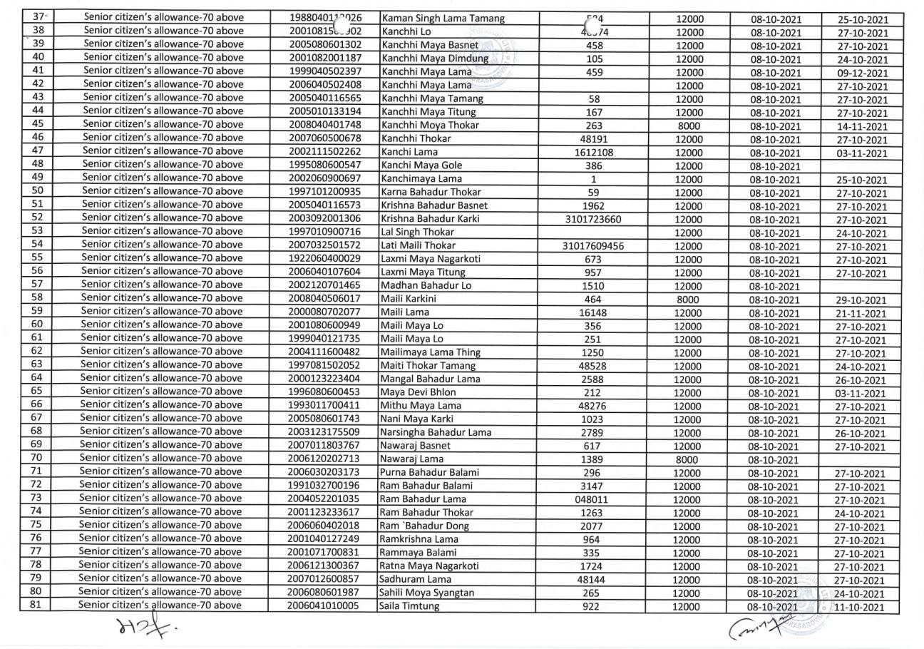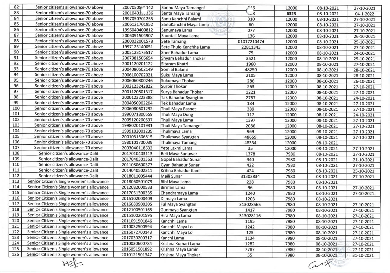 आ.व २०८१-०८२ को चौथो किस्ताको सामाजिक सुरक्षा भत्ता वडा नं. ३ बाट प्राप्त गरेका लाभग्राहीहरुको विवरण