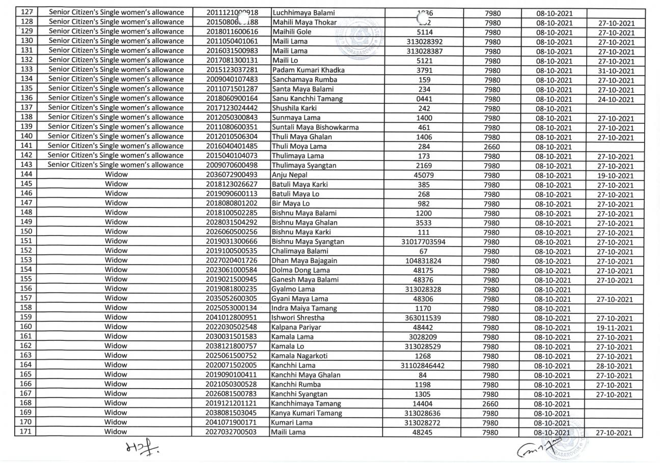 » वडा नं. ५ बाट सामाजिक सुरक्षा भत्ताकाे पहिलाे किस्ता प्राप्त गरेका लाभग्राहीहरुकाे विवरण ।