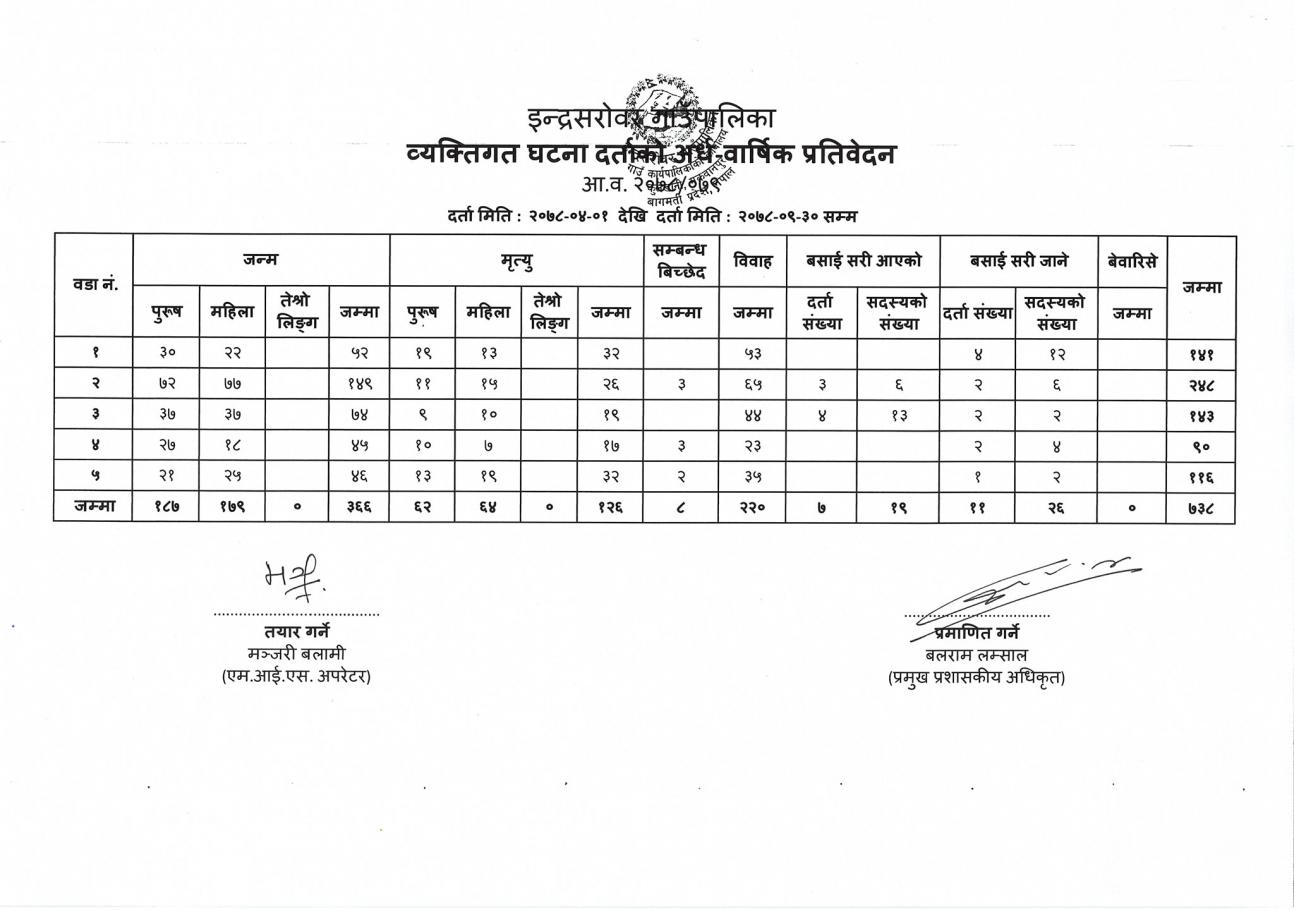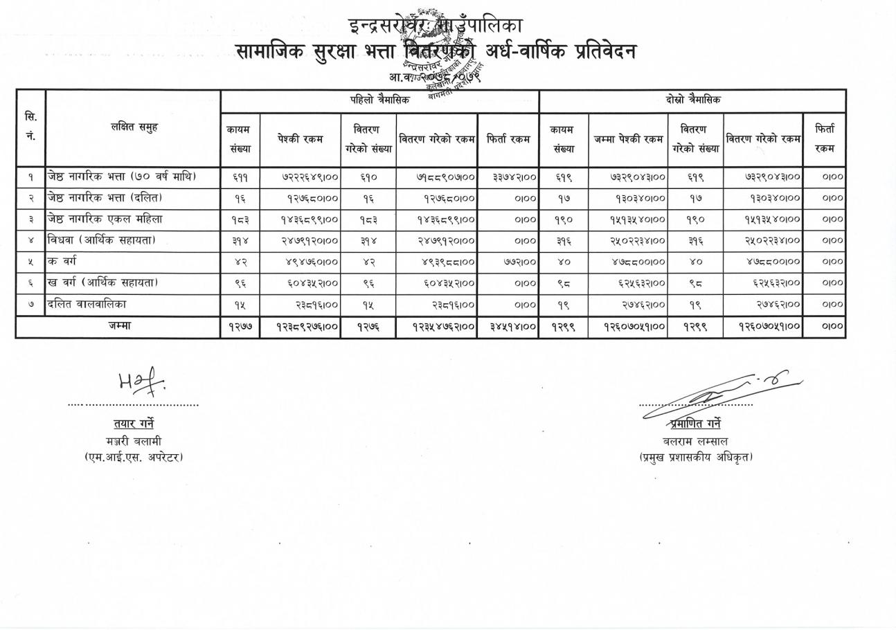 सामाजिक सुरक्षा तथा पञ्जीकरण सम्बन्धि तथ्याङ्कहरुको अर्धवार्षिक प्रतिवेदनको जानकारी सम्बन्धमा ।