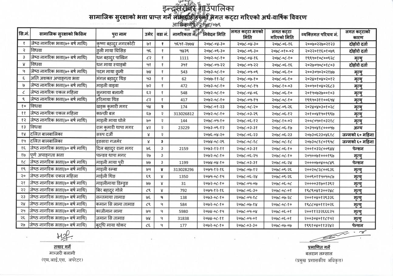 आ.व २०८१-०८२ को चौथो किस्ताको सामाजिक सुरक्षा भत्ता वडा नं. ५ बाट प्राप्त गरेका लाभग्राहीहरुको विवरण