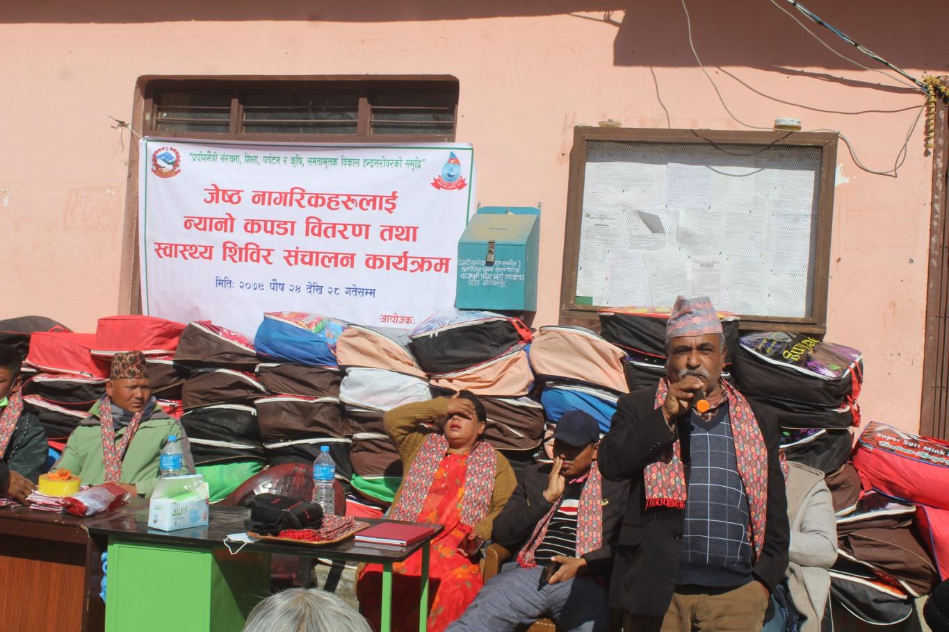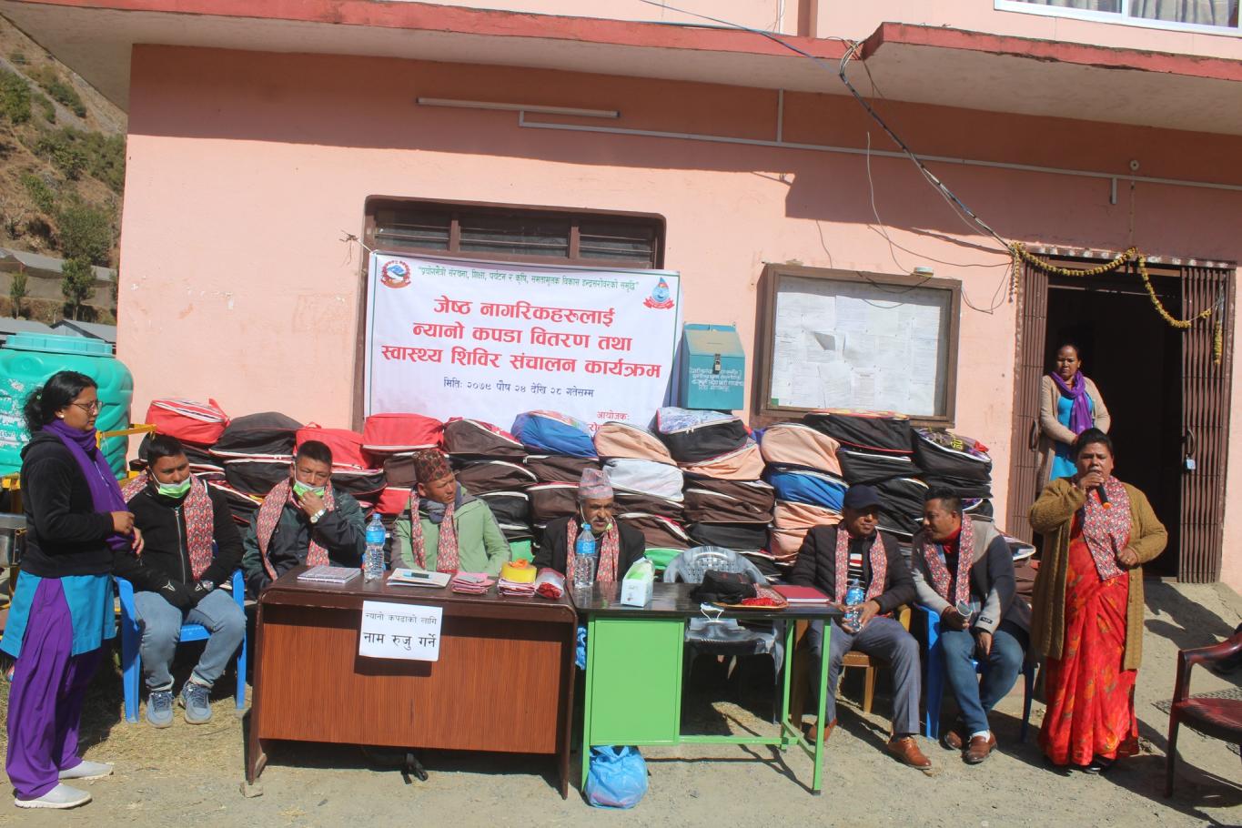 ६८ वर्ष माथिका जेष्ठ नागारिकहरुलाई न्यानो कपडा वितरण, नि:शुल्क स्वास्थ्य परिक्षण तथा खाजा कार्यक्रम अन्तर्गत २ नं. वडा, कुलेखानीमा कार्यक्रम सम्पन्न