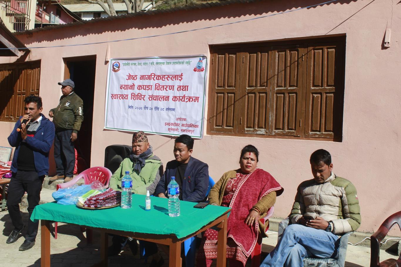 ६८ वर्ष माथिका जेष्ठ नागारिकहरुलाई न्यानो कपडा वितरण, नि:शुल्क स्वास्थ्य परिक्षण तथा खाजा कार्यक्रम अन्तर्गत १ नं. वडा, मार्खुमा कार्यक्रम सम्पन्न