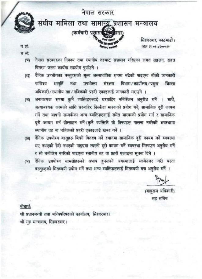 » Lockdown को बेलामा रास्ट्र सेवक कर्मचारीहरुको लागि आवश्यक निर्देशन !