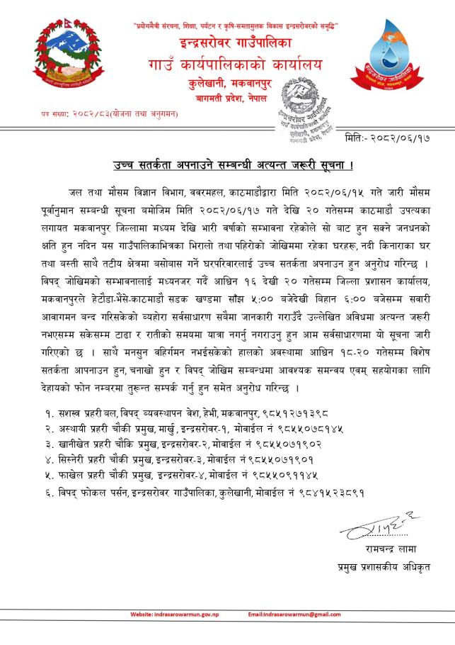 उच्च सतर्कता अपनाउने सम्बन्धी अत्यन्त जरूरी सूचना !