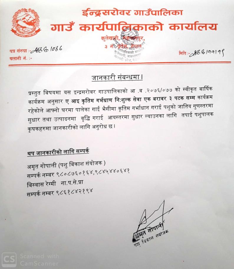 ए.आई (AI) कृतिम गर्भधाण नि:शुल्क सेवा सम्बन्धी सूचना !!