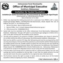 जेष्ठ नागरिकहरुको लागि न्यानो कपडा (Blanket) खरिदको कार्यको बोलपत्र आव्हान सम्बन्धी सूचना ।