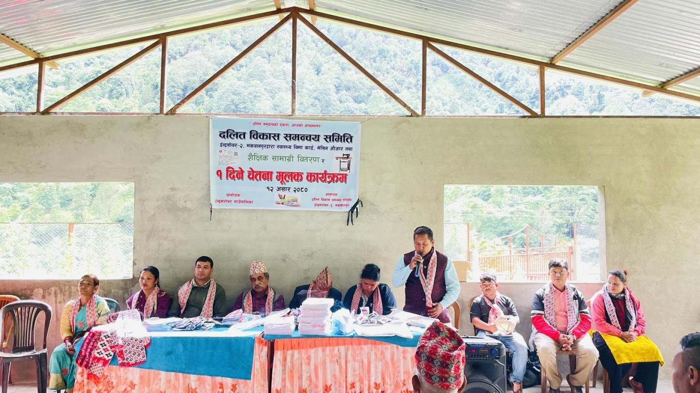 १ दिने चेतना मुलक कार्यक्रम र स्वास्थ्य विमा कार्ड, मेशिन औजार तथा शौक्षिक सामाग्री वितरण